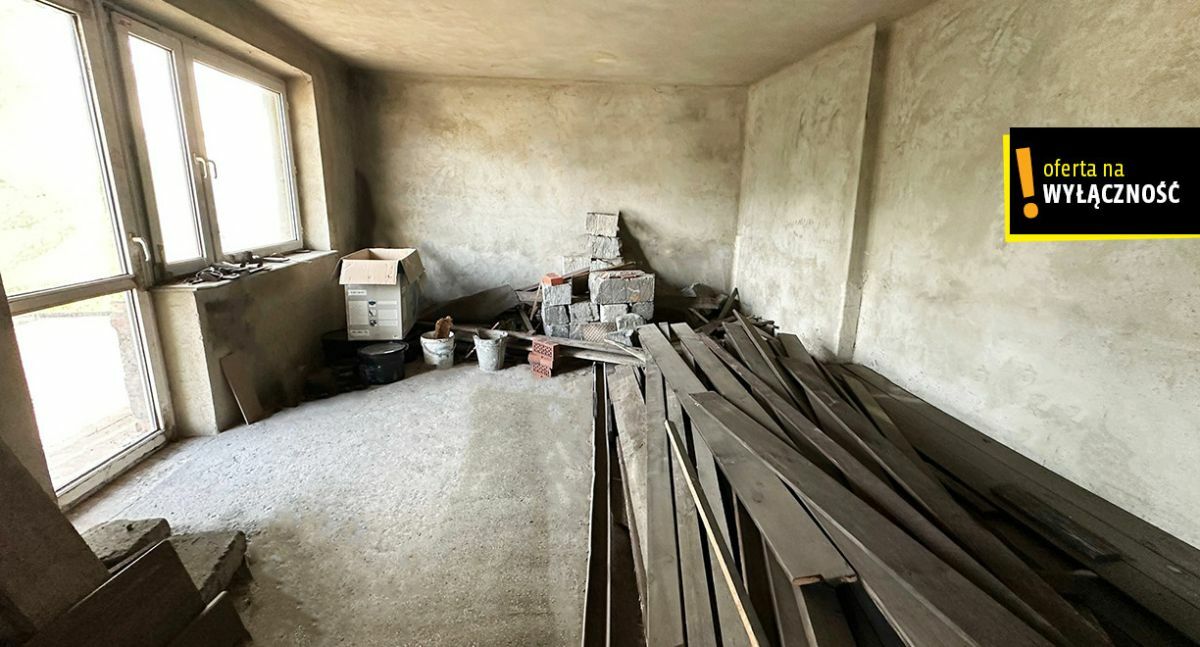Dom został zaprojektowany jako solidna konstrukcja murowana, z wysokimi pomieszczeniami i przestronnym układem. Dodatkowo wysokie poddasze - idealne na dodatkowe pokoje, pracownię lub przestrzeń rekreacyjną. Elewacja budynku pozostaje w stanie surowym, co daje nowemu właścicielowi możliwość dowolnego wykończenia według własnego projektu i stylu.