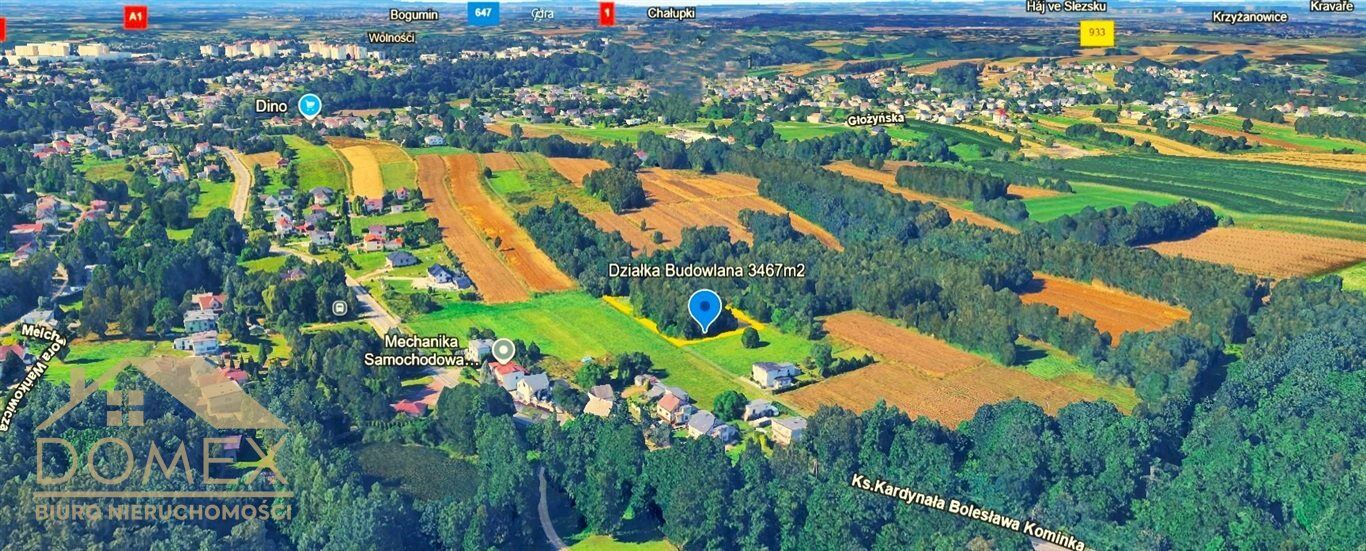 DZIAŁKA NA SPRZEDAŻ - WODZISŁAW ŚLĄSKI, ul. ks. kard. Bolesława KominkaPowierzchnia działki: 3467 m²